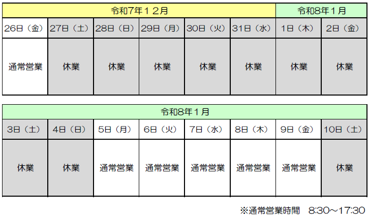 さて、年末年始における福祉ビジネス部のサポート体制につきましては、誠に勝手ながら